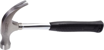 Dit is de meest voorkomende hamer soort in de gereedschapskisten. De klauwhamer heeft een platte kop aan de ene kant en een gebogen klauw aan de andere kant om er spijkers mee uit te trekken.